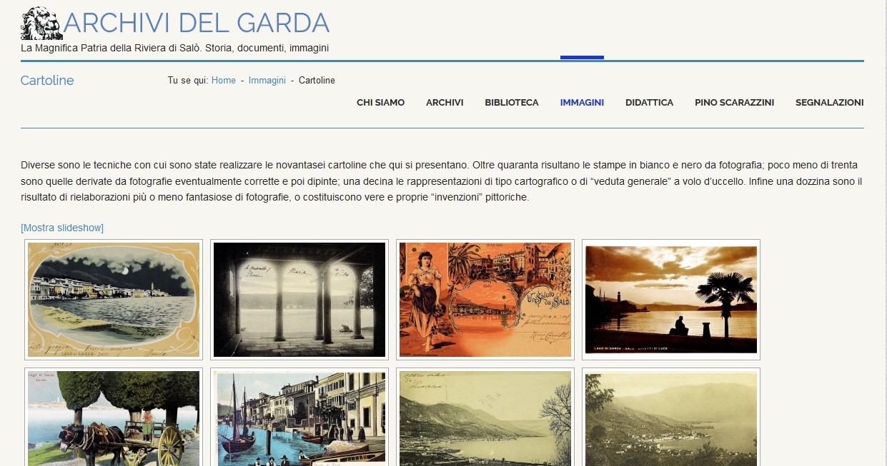 Abbiamo cominciato a pubblicare le immagini dagli Archivi gardesani. Pian piano riempiremo i contenitori, per ora un po’ vuoti: cartoline, cartografia, raffigurazioni della Magnifica Patria. E appena possibile filmati. E’ la sezione che a colpo d’occhio rende di più. Continua a leggere